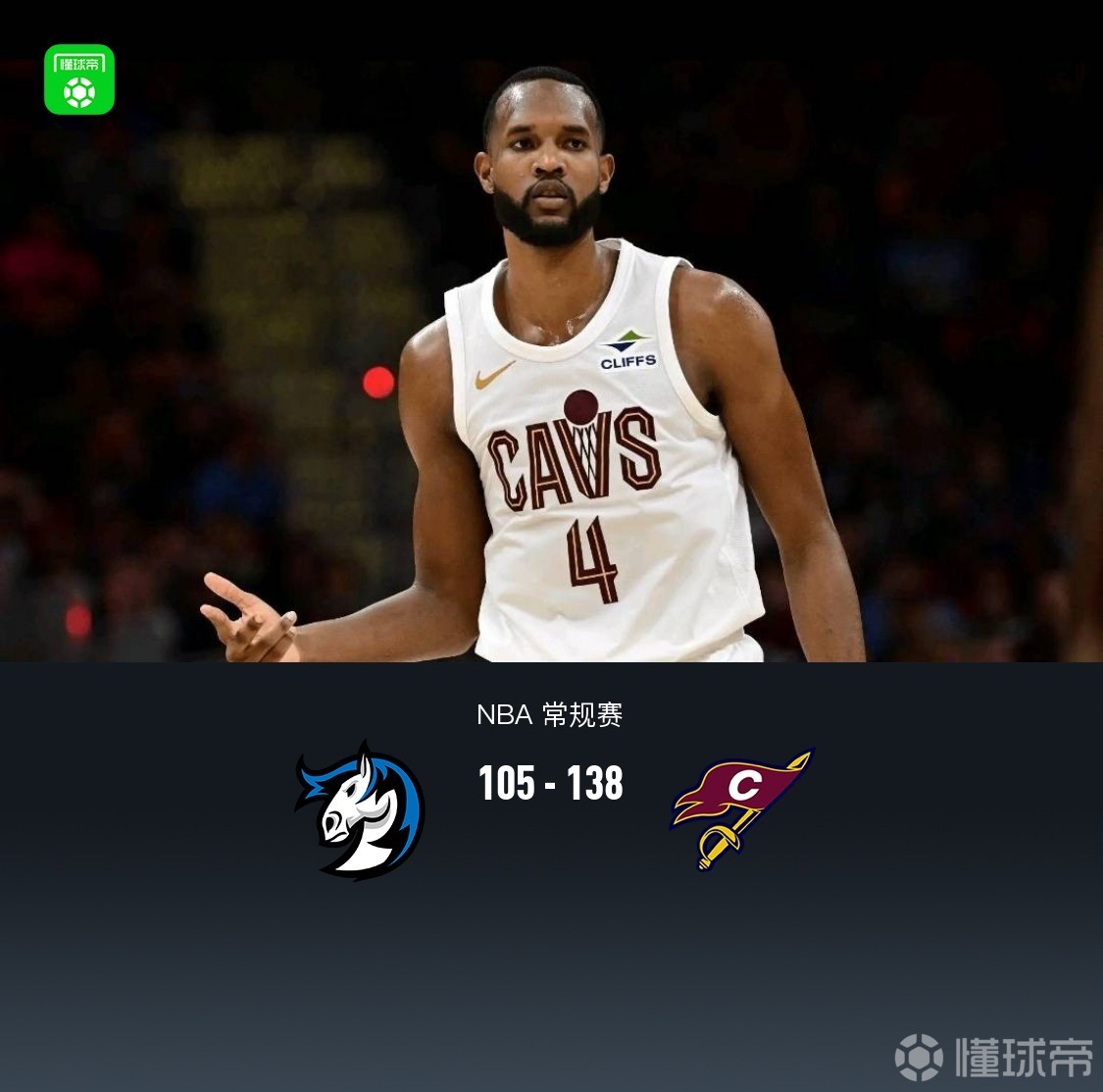 第四节,开节独行侠弗拉格、克里斯蒂联手得分,骑士埃利斯、施罗德联手得分将分差拉大至30分以上,随后进入练兵时间,全场结束,最终独行侠105-138不敌骑士