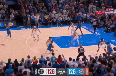 那一刻,比分定格在129-126。球进后还剩下大约2秒,可掘金手里的暂停早就用光了。阿隆-戈登被迫尝试了一个差不多30米开外的远距离“甩锅球”,可惜皮球直接偏出了篮筐。