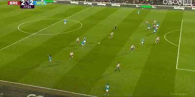 第37分钟,瓦塔拉无私助攻,蒂亚戈推射空门得手,布伦特福德2-0领先